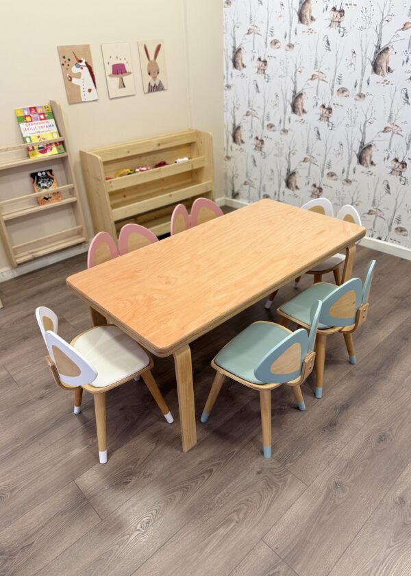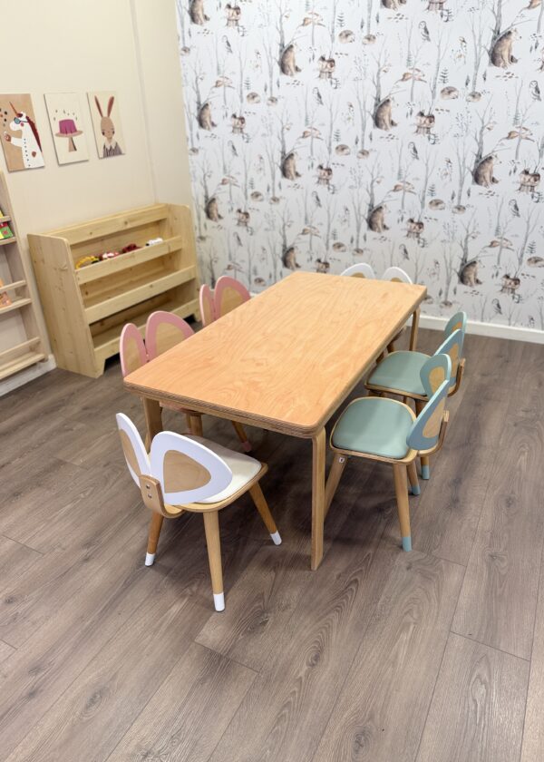 Kayın Kontraplak Anaokulu Masası ve Kelebek Sandalye Seti
