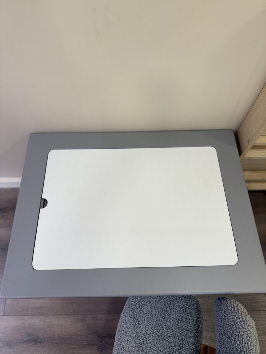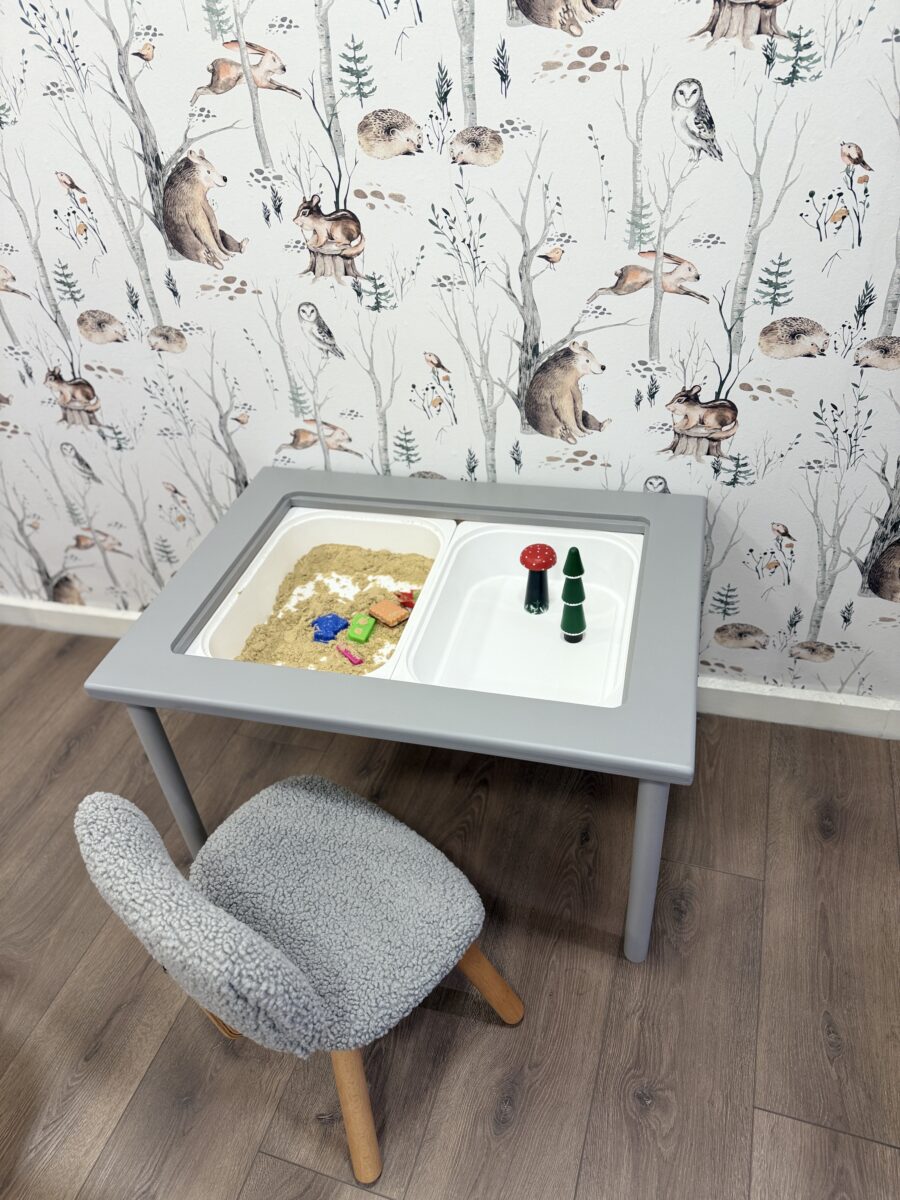 Doğal ahşap kullanımı sayesinde her gri ahşap aktivite masasında ahşap damarları ve renk tonlarında küçük farklılıklar görülebilir. Bu doğal detaylar, ürünün özgün karakterini ve el işçiliğini yansıtır. Kullanılan yüzey işlemleri çocuk sağlığına uygun olup güvenli bir kullanım sunar.