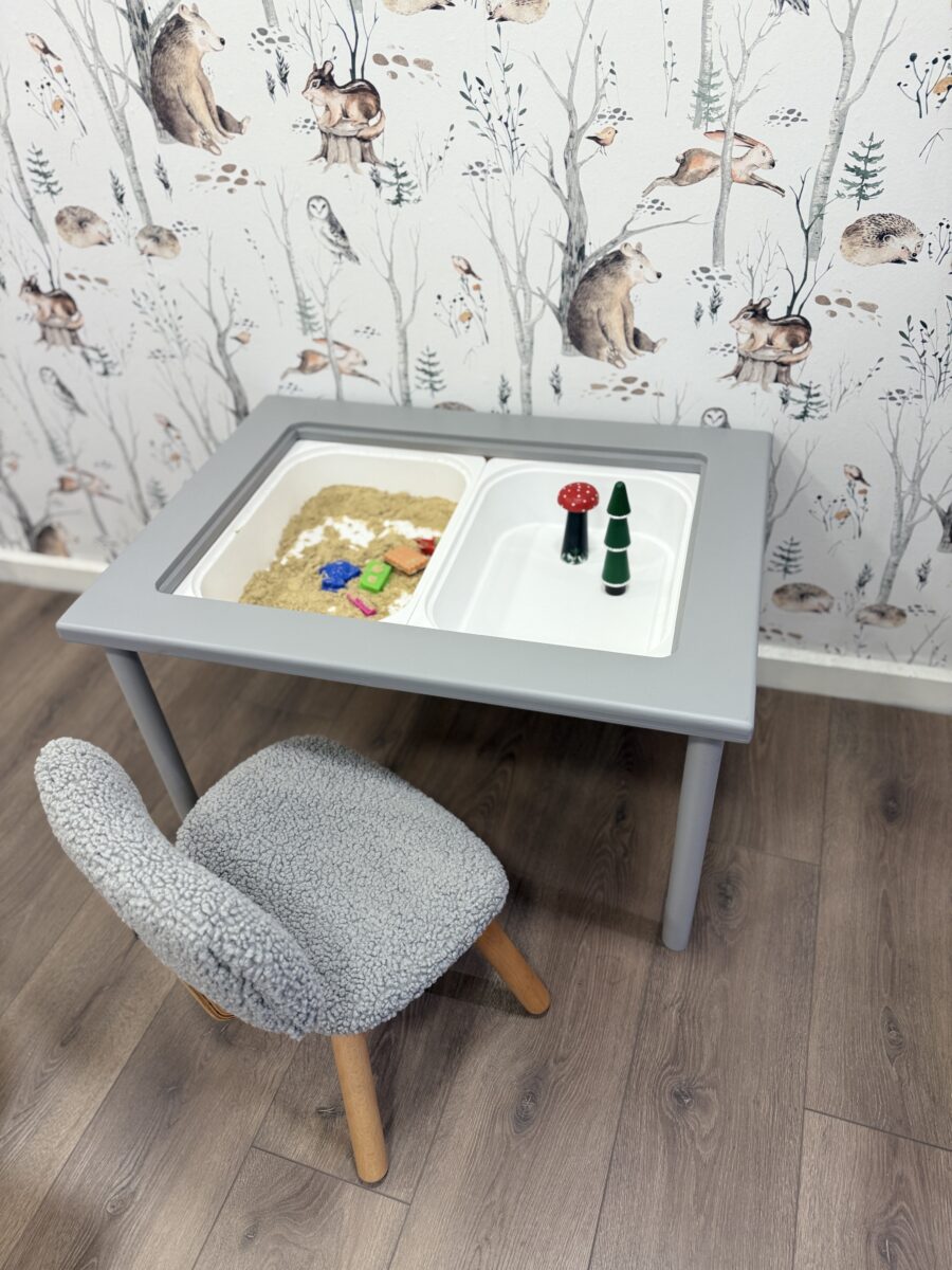 Minimal çizgileri, nötr rengi ve fonksiyonel yapısıyla gri ahşap aktivite masası, çocuklar için güvenli, konforlu ve ilham verici bir oyun ve öğrenme alanı oluşturur. Hem ev hem de yoğun kullanıma sahip eğitim ortamlarında estetik ve dayanıklı bir çözüm arayanlar için ideal bir tercihtir.