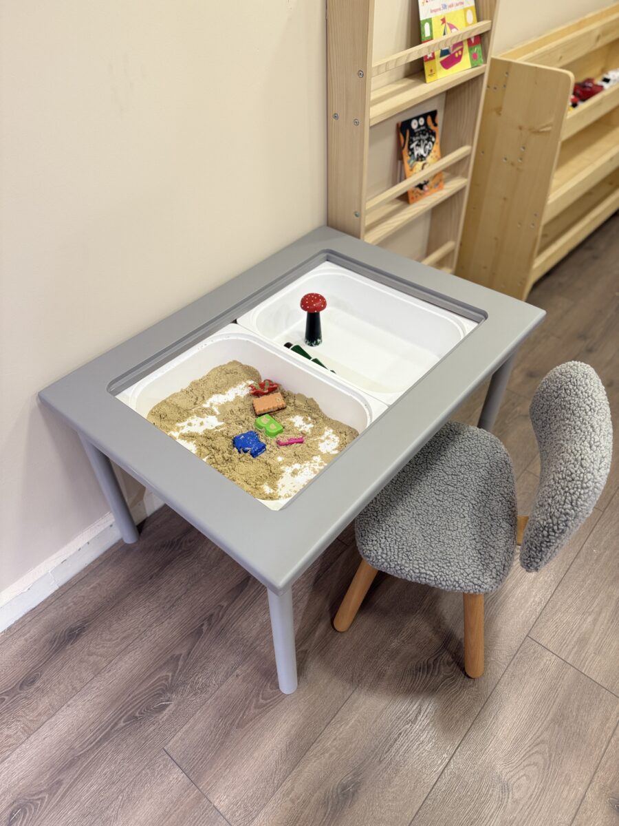 Montessori yaklaşımından ilham alan tasarımıyla aktivite masası, çocukların bağımsız hareket edebilmesini ve kendi alanlarını özgürce kullanabilmesini destekler. Çocuklar masalarını kendi başlarına kullanabilir, aktivitelerini düzenleyebilir ve sorumluluk alma alışkanlığı kazanabilir. Bu yönüyle masa, yalnızca bir mobilya değil; aynı zamanda çocuk gelişimini destekleyen işlevsel bir üründür.