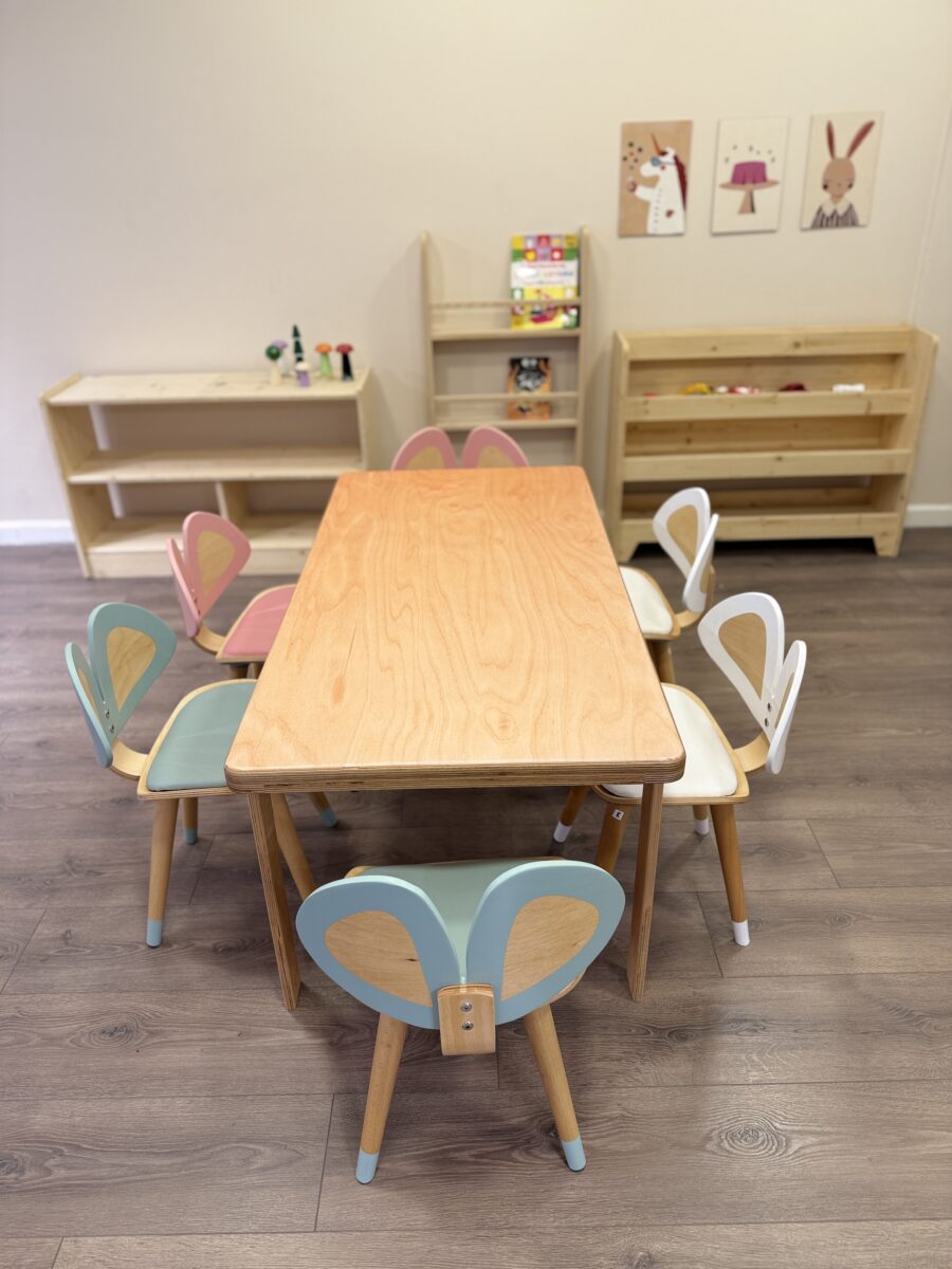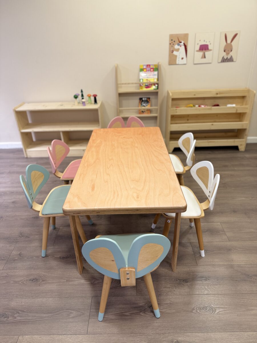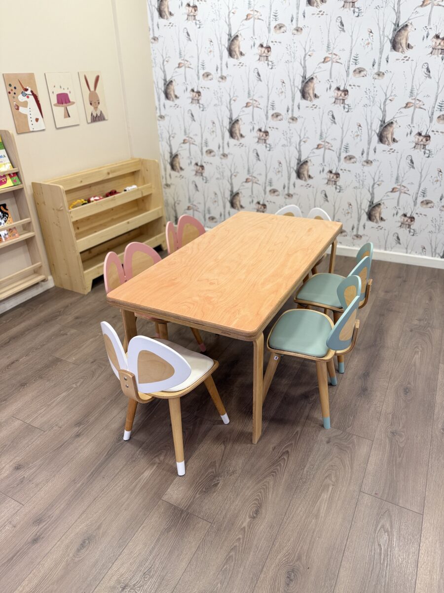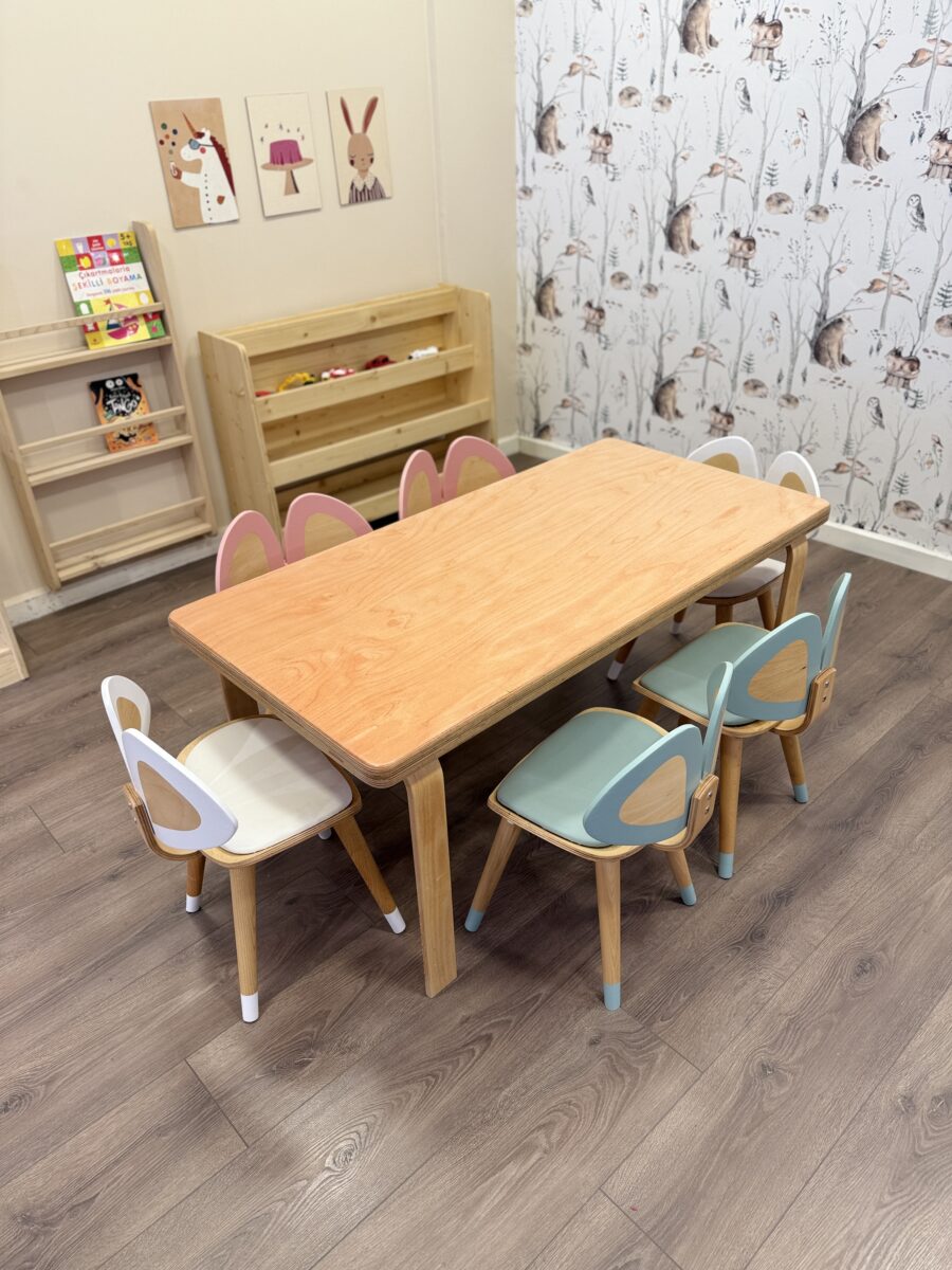 Sade ve zamansız tasarımıyla masa, Montessori ve Reggio Emilia gibi çocuk merkezli eğitim yaklaşımlarıyla uyumludur. Dikkat dağıtmayan doğal görünümü, çocukların odaklanmasını destekler ve öğrenme ortamlarında düzenli bir atmosfer oluşturur. Farklı sınıf konseptleri ve dekorasyon stilleriyle kolayca uyum sağlar.