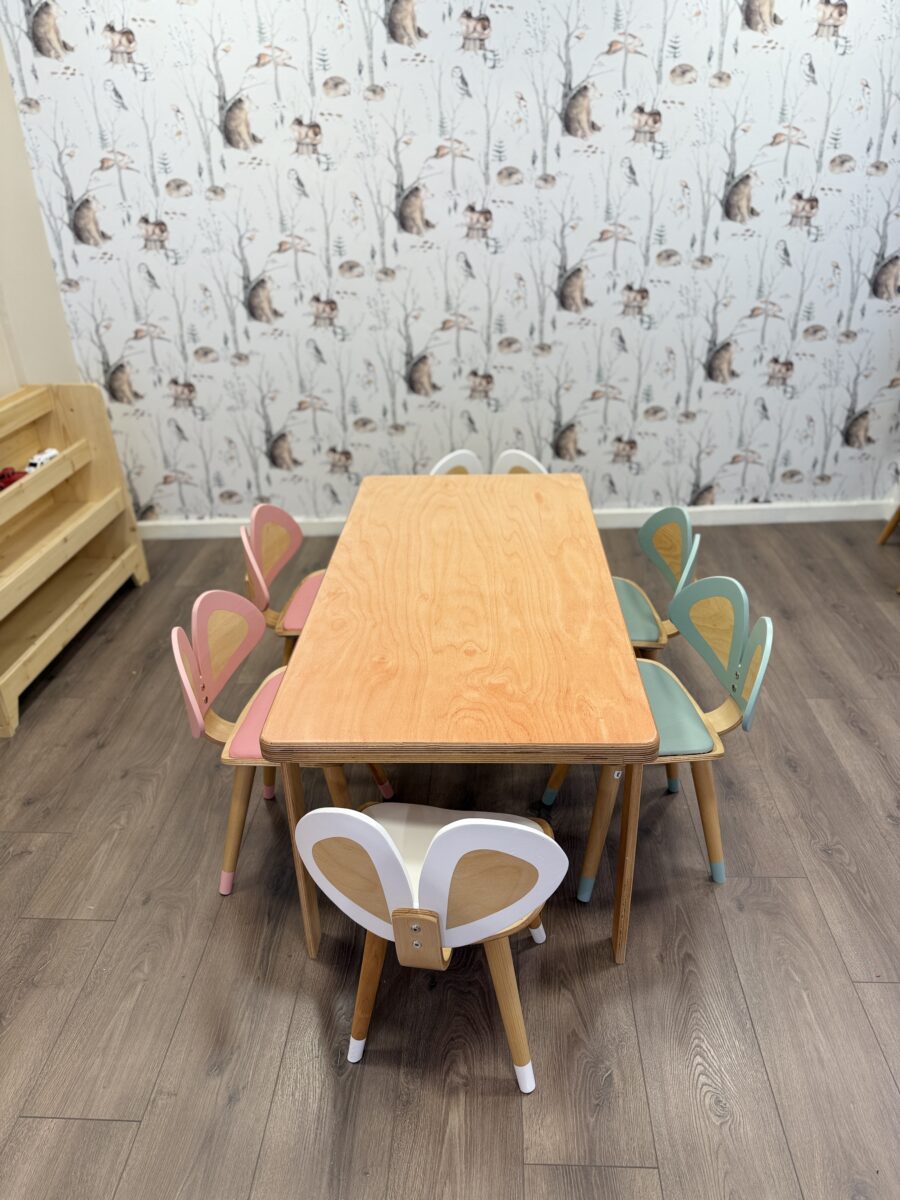 Kayın Kontraplak Anaokulu Masası ve Kelebek Sandalye Seti
