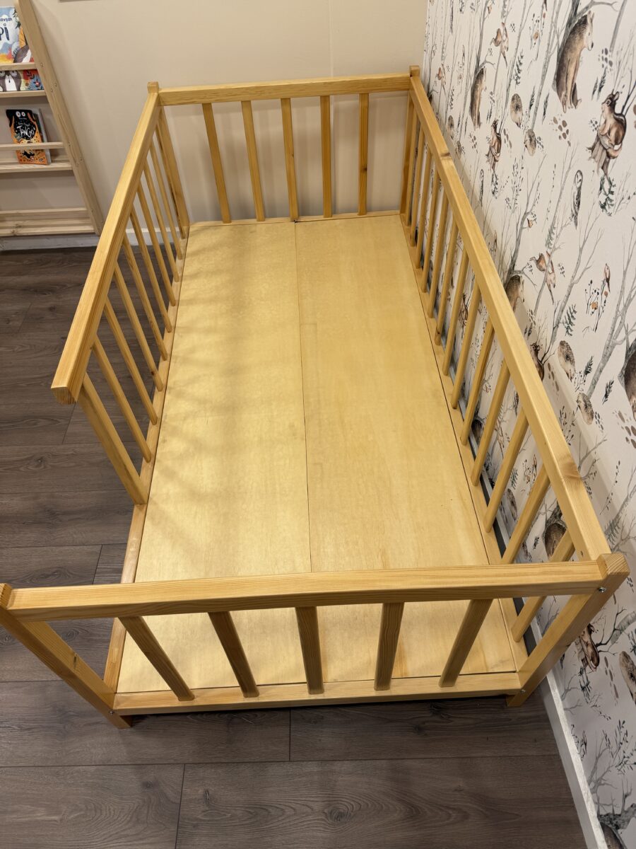 Yapısal olarak güçlü bir forma sahip olan yatak, kontraplak taban ile desteklenmiştir. Yatak yüksekliği yalnızca 10 cm olduğundan düşme riski minimumdur; bu da özellikle küçük çocuklar için maksimum güvenlik sunar. Üst kısımda yer alan korkuluk, çocuğun gece boyunca güvenle uyuyabilmesine yardımcı olur. Geniş yatma alanı, çocuğa konforlu bir uyku deneyimi sunarken sade ve doğal görünümü her çocuk odasına kolayca uyum sağlar.